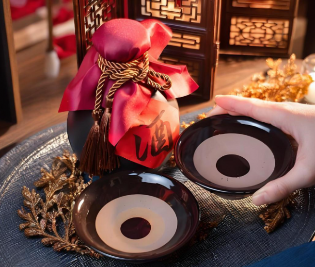 选用本地富硒整粒籼米,取阁皂山九龙泉富硒地下水,在红褚条石窖池中遵循“12353”特香古法发酵81天,基酒窖藏6年再用15年老酒提香,入口“一酒三香”单瓶70多元,适合日常小酌。