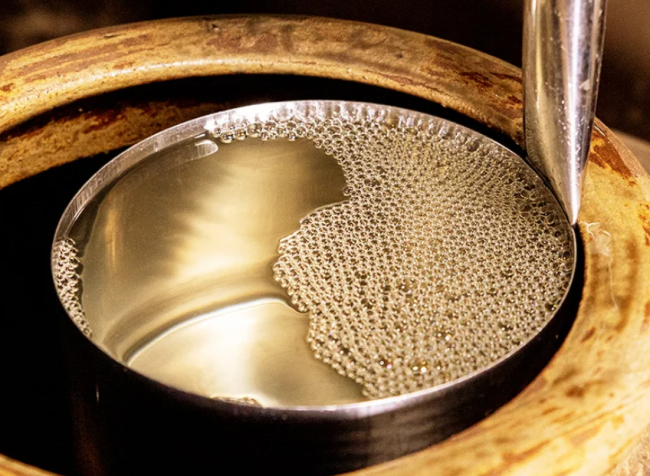 酒花的本质是酒精和水的表面张力差异造成的泡沫,五粮液《白酒实验室》的实验早就证实:酒精度越低,酒花越小、越密、消散越慢,酒精度越高,酒花越大、消散越快。
