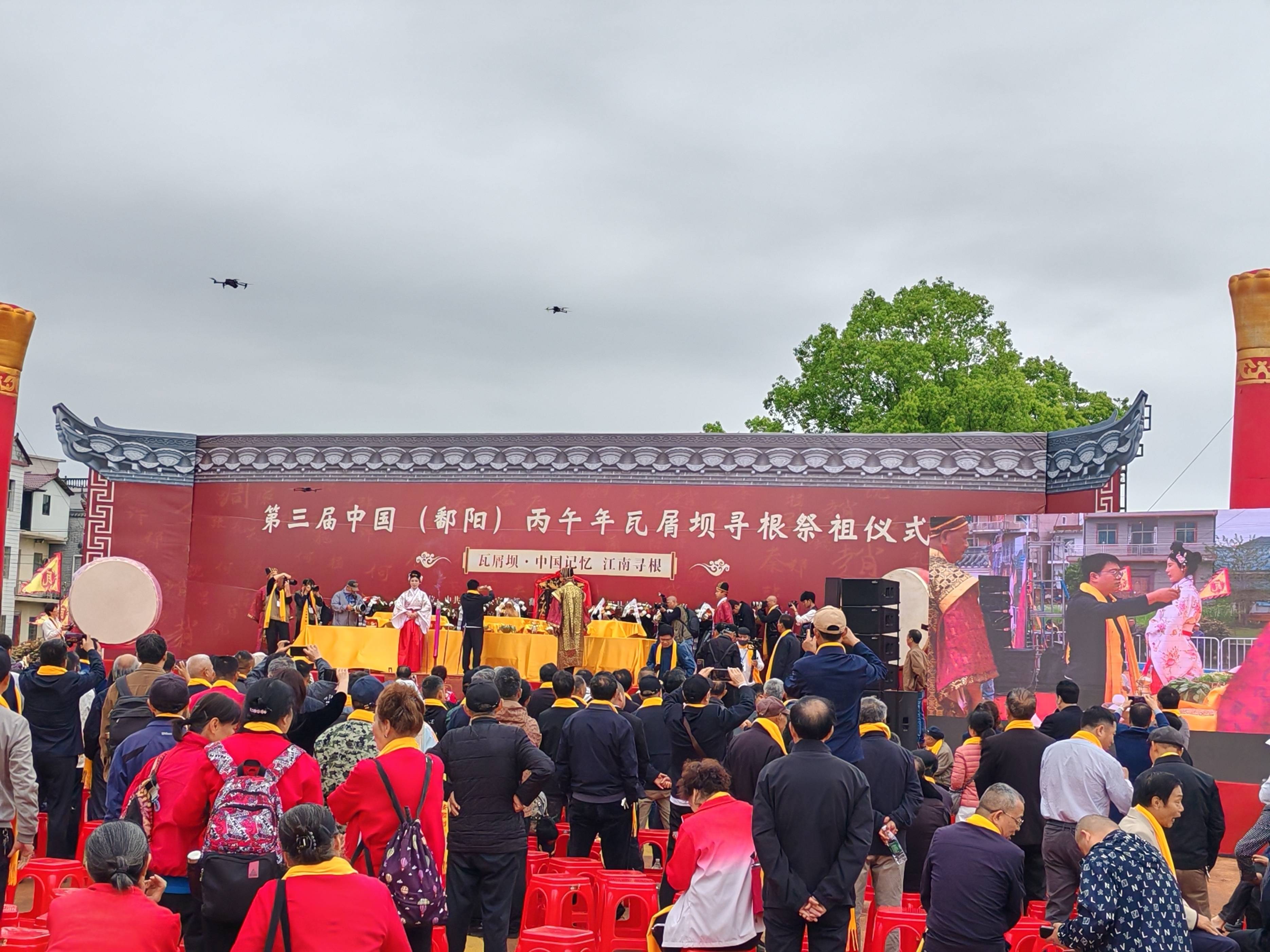 上午八时三十分,大典在浓郁的文化氛围中拉开序幕。现场播放的《瓦屑坝文化宣传片》,将人们的思绪引向元末明初那段“江西填湖广”的浩大迁徙史诗。随后,富有地方特色的赣剧饶河戏《寻根记》深情上演,辅以《鄱湖颂歌》的朗诵与童声《瓦屑坝谣》的吟唱,悠远乡音瞬间唤醒了深植于基因中的记忆。知名歌手一曲《天下一家亲》,更以悠扬旋律唱出了四海移民后裔血脉同源、心手相连的共通情感,将现场气氛推向首个高潮。