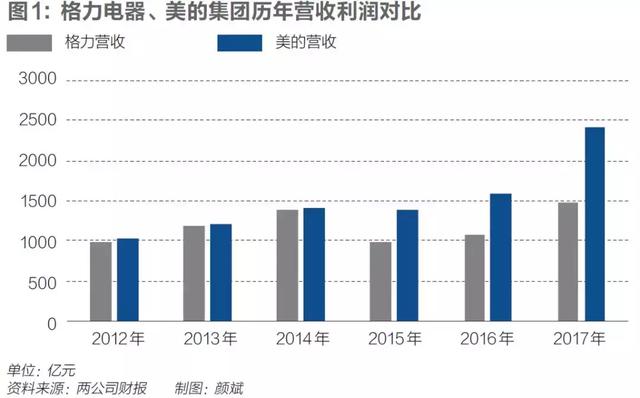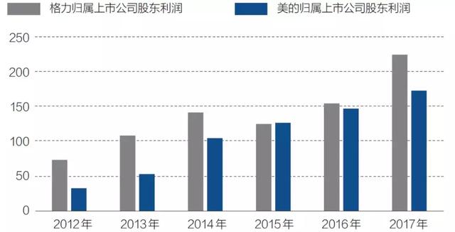 格力和美的,就是中国家电行业的代表。2017年,这两家公司的市值、净利润分别位居国内A股家电上市公司的前两位。净利润排名第二的美的,超过排名第三至第十名公司净利润的总和;市值第二的格力,与其后第三名至第七名公司市值总和相当。其他竞争者中,仅有青岛海尔(600690.SH)凭借多元化的产品结构在营收上略微超过格力,但利润仅为格力的约三分之一。