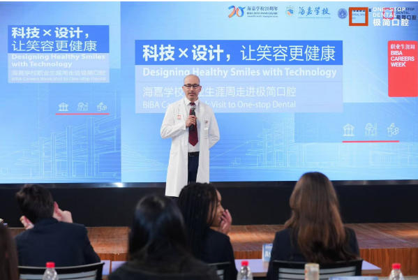 医院管理层及董事长依次开展行业分享,结合行业发展趋势、自身从业与创业经历,解读口腔医疗行业格局与未来前景,剖析“医疗+科技”“医疗+设计”融合趋势,传递“专业为本、温度随行”的行医准则,鼓励学子立足长远、深耕热爱,拓宽学业与职业选择视野。