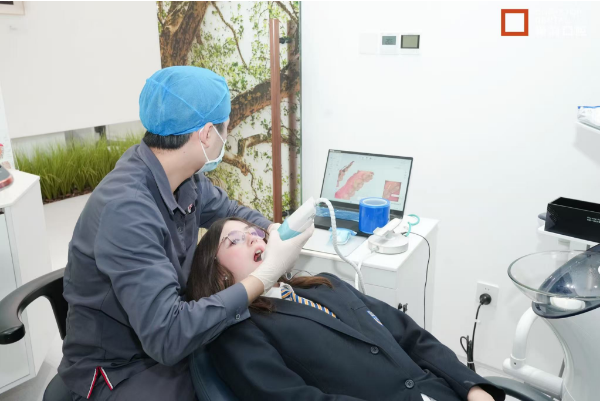 动手实践结束后,学生们分批前往诊疗区,体验数字化口腔检测项目。大家有序开展口内扫描、口腔摄影等项目,医护人员一边规范操作设备,一边耐心讲解检测流程、牙齿健康常识,手把手指导学生查看自身口腔状况。