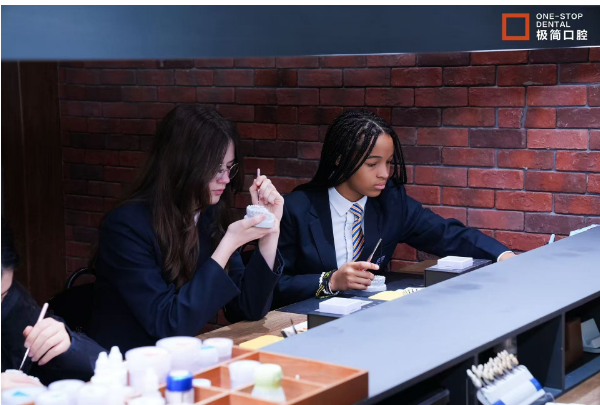 大家全程观摩口腔模型3D打印全过程,在技师一对一悉心指导下,亲手完成牙冠上色、烧结等核心步骤,大胆发挥创意,打造专属个性化牙冠模型。这一沉浸式实操过程,让学生们真切感受“原材料到精品牙冠”的蜕变奇迹,也深刻理解极简口腔自建义齿加工中心,实现设计、生产、加工一体化闭环运营,对提升口腔诊疗精准度、高效性的核心价值。