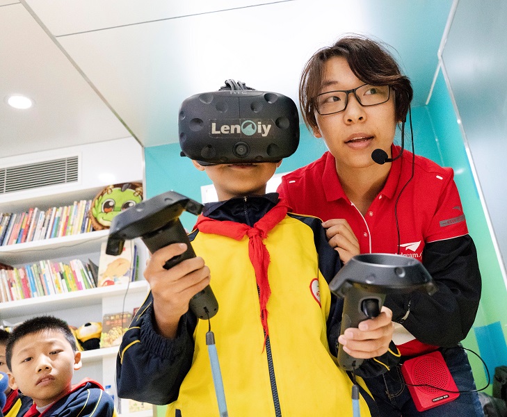 “梦想大篷车苏宁号”是由上海真爱梦想公益基金会和苏宁公益共同打造的公益项目收起时,是一辆大卡车;展开时,是一间多媒体教室。2018年,梦想大篷车以“素养教育边疆行”为主题,把《去远方》《理财课》《VR体验课》《轻摄影》《3D打印科技课程》等梦想课程及科技活动课程带到边疆,让当地的师生充分体验到“梦想的神奇、科技的力量、艺术的美好”。