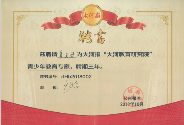 小编: 2018年10月25日,优实力教育(原捷登教育)创始人姜囡囡老师被大河报“大河教育研究院”聘为青少年教育专家,聘期三年
