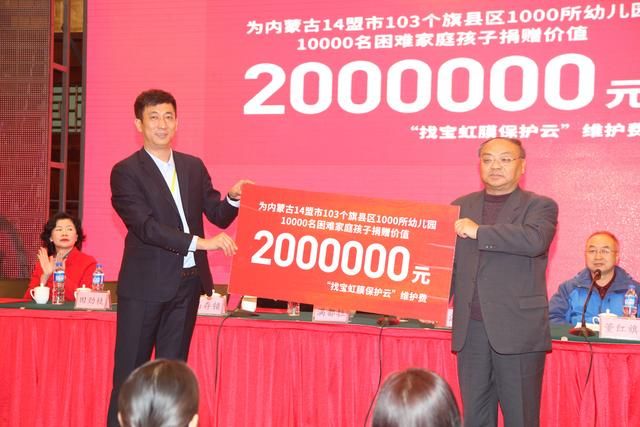 会上还举行了捐赠仪式,内蒙古视创弘博科技有限公司为内蒙古12个盟市100个旗县区的1000所幼儿园中选择10000个困难家庭孩子捐赠价值2百万的“找宝儿童虹膜保护云”防丢失系统。