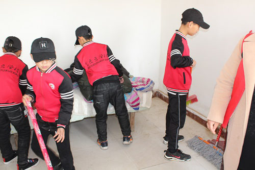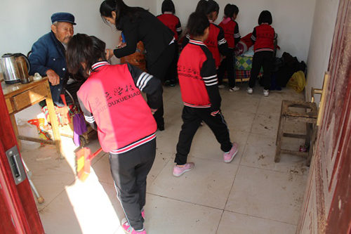 接着,孩子们有的拿起扫帚打扫卫生、有的为奶奶叠床被、有的为爷爷剪指甲,忙的热火朝天。