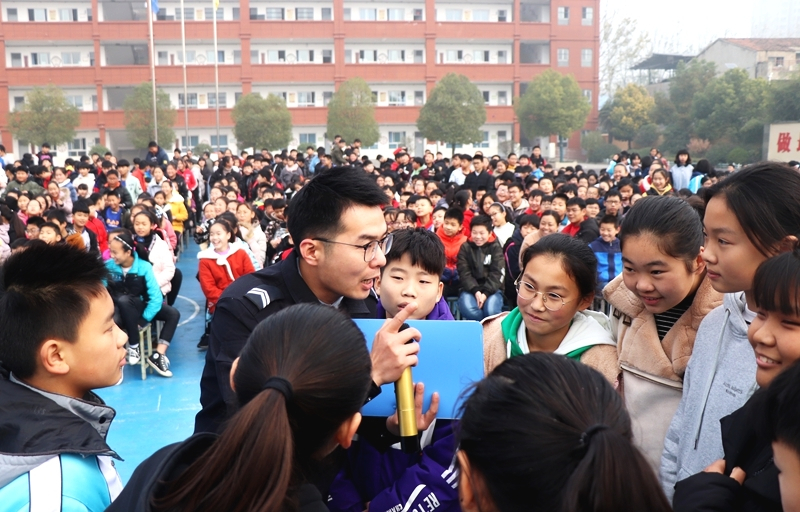 接着,民警通过情景互动表演、重点剖析等方式,针对青少年学生中极易存在的以大欺小、打架斗殴、索要财物等方面的不良行为入手,分析了这些不良行为的特点及诱发犯罪的因素,以及给社会、家庭、学校和学生个人带来的危害。以此教育和警示中小学生远离违法犯罪,增强法制观念,提高法制意识,懂得用法律来维护自身的合法权益。
