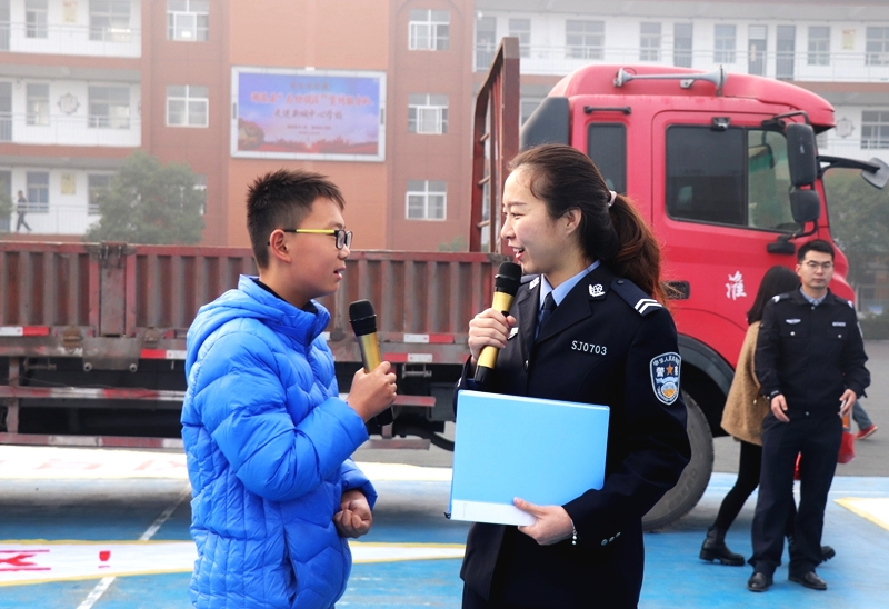 随后,民警将一辆重16吨的大货车开到了濉溪县新城中心学校的操场上,向同学们讲解交通安全知识。同时,分别在大货车的前部、左右两侧和尾部贴出大货车盲区,让几十位同学站在盲区内,通过这种现场模拟的方式,调动了同学们的积极性,直接增加了学生们对货车盲区的直观认识,进一步加深对交通安全知识的理解。此项活动给学生上了一堂生动直观的交通安全防范教育课,让学生们认识到要谨慎慢行、遵守交通法规,自觉抵制交通违法行为,增强自我防范意识,争做文明交通的实践者、和谐交通的维护者,珍爱生命,安全出行。