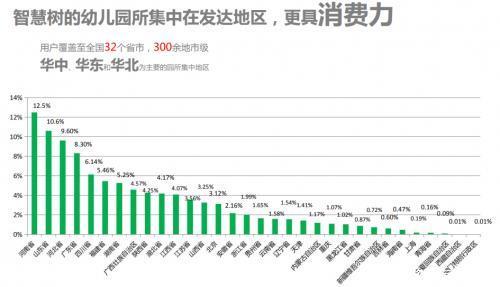 在智慧树的用户画像中,80后和90后的年轻妈妈占据80%,她们是伴随互联网成长起来的一代,因此在幼儿教育方面更习惯互联网,对互联网的认可度更高。不仅如此,智慧树的幼儿园更多集中在发达地区,具有更高的消费力。