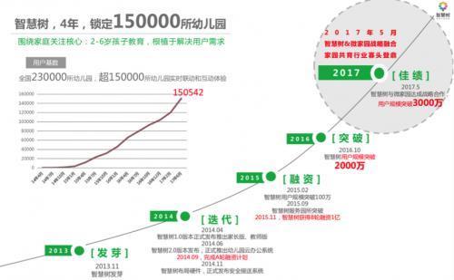 智慧树专注于家园幼教互动平台建设,在全国拥有庞大的幼儿园,覆盖了32个省市自治区,全国平均2所幼儿园就有1所采用智慧树平台,注册用户已突破3000万,触达中国1500万 年轻的家长人群,其中大部分为宝妈人群。