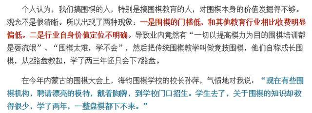 小编: 日前,弈城网李哲勇老师的一篇《围棋教育的真正价值是什么》的文章引起广泛讨论,内容中提到某些围棋教学机构“从2路盘教起,学了两三年还只会下7路盘”的事例,令人震惊,同时关于围棋教育的意义也有着众多讨论
