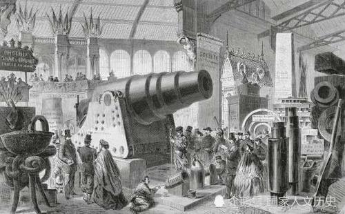 /插画,1867 年在巴黎世界博览会上展出的克虏伯大炮,原画存于法国国家图书馆