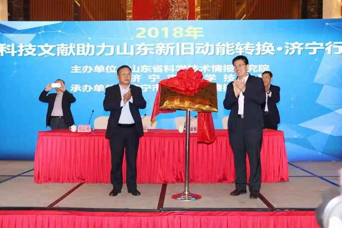 山东省科技情报研究院党委书记、院长刘显福,济宁市科技局党组书记、局长王亚栋等领导出席会议并为“山东省科技文献共享服务平台济宁市服务站”揭牌。
