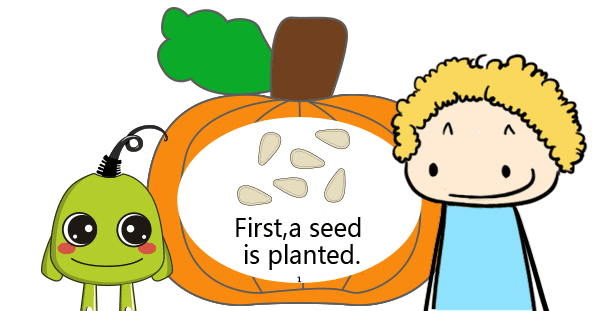 本课通过对花和南瓜的5个生长阶段的学习,掌握植物处于不同生长期的概念,即seed(种子),sprout(发芽),seedling(幼苗),plant(植物),flower(开花)。