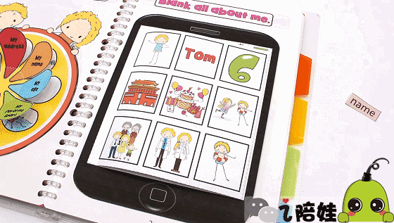 第2页是“我的IPAD”,练的是把核心单词,放到句型里学。比如通过图片Tom的提示,找出对应的单词name,贴到句型My name is Tom里,进一步了解单词在句型中的用法。