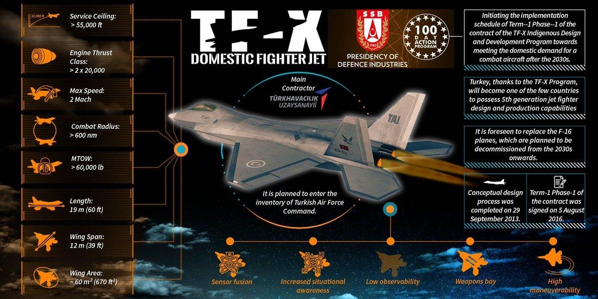 在中东国家中,土耳其的军工近年来可谓野心勃勃。国产五代机、轻型航母都在纷纷上马,土耳其军工部门和TAI公司日前也公布了其国产TF-X五代机的一个宣传图,披露了其一系列战技术指标,这种战斗机预计在2020-2030年间服役。