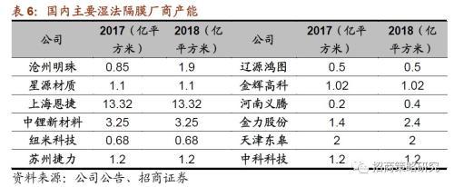 近几年在湿法隔膜需求提升的背景下,国内湿法隔膜企业加大产能扩张力度,同时原先的干法隔膜企业也相继投资湿法隔膜产线年国内湿法隔膜名义总产能超过26亿平米,但由于隔膜生产技术难度较大,国内隔膜企业良率较低。目前国内湿法隔膜一线%,所以湿法隔膜有效产能大大低于其实际产能。与此同时,国内优质企业也在积极寻求与国外厂商的战略合作,将国产隔膜推向全球市场。2018年7月,星源材质与株式会社村田制作所(“Murata”)签订战略合作协议,双方将在锂离子电池隔膜的开发、销售等方面利用各自的优势,进行全面的合作。Murata将公司视为其锂离子电池隔膜的优先供应商,在公司的隔膜产品满足Murata要求的前提下,Murata将优先考虑向公司采购锂离子电池隔膜;公司将Murata视为优先客户,优先考虑向Murata供应锂离子电池隔膜产品。星源材质提供给Murata的产品价格将不高于相同规格型号产品在类似商务条件下出售给其他客户的价格。
