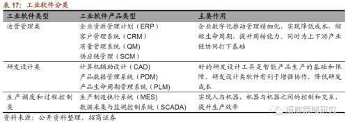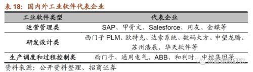 工业软件:研发设计类、生产控制类被外资企业占据主导,信息管理类目前处于群雄割据。国内市场80%的设计软件、50%的制造软件等为国外品牌占领,但也涌现出了一些优秀的工业软件企业。相关上市公司:用友网络等。