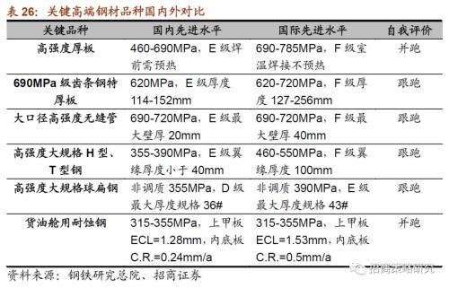 国内外高端钢铁产品的差距可以从以下四个领域的用钢现状体现出来。在海洋工程装备与高技术船舶关键用钢方面,我国亟待开发高端品种。目前,从用量上看,我国90%的海洋装备用钢都可以自给,但从品种规格上看,占牌号数量70%的高端海洋装备用钢严重依赖进口。