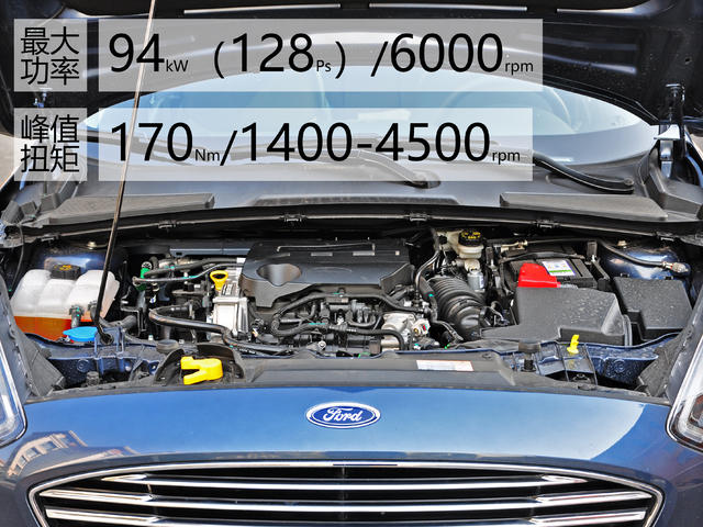新款福睿斯首次搭载了福特EcoBoost®125(1.0T)涡轮增压发动机,最大功率94kW(128Ps),峰值扭矩170Nm,并配备发动机启/停和主动式进气格栅,燃油经济性显著提升。