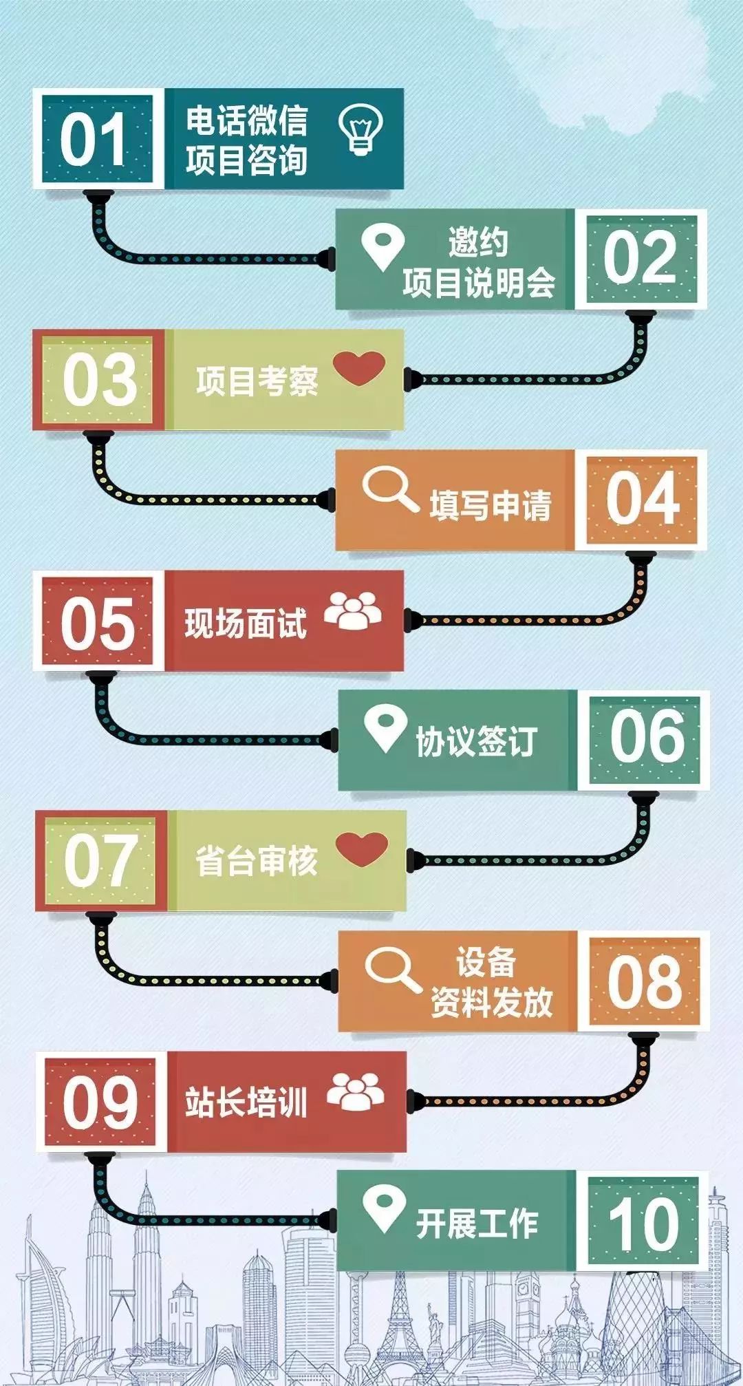 4.一旦面试考核通过,总部为其提供免费培训和有竞争力的薪酬机制和发展空间。
