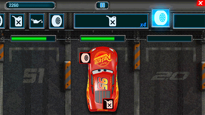 由于车身比较重,前轮转向幅度很大,终极闪电麦昆可以在拐弯时刻意制造出甩尾效果,配合甩尾时的表情和音效,趣味十足!