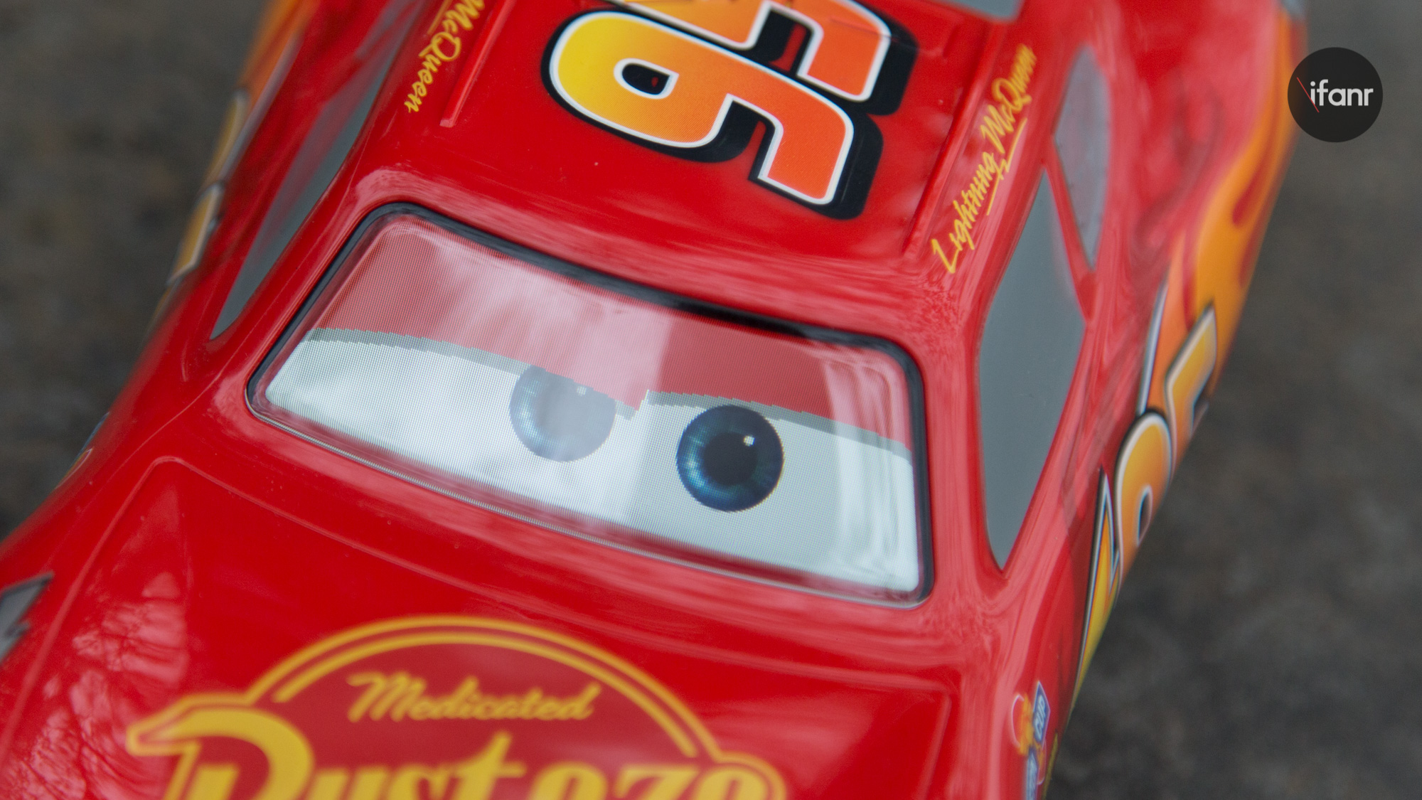 好在闪电麦昆本质上就是一台跑车,想要还原动画中灵动的神韵可比钢铁侠容易多了。此刻的爱范儿办公室里恰好就摆着一台会眨眼睛会说话的「终极闪电麦昆」。