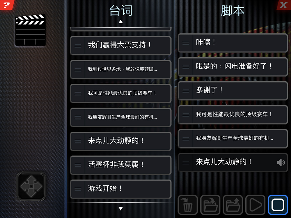 没有连手机的时候,闪电麦昆也会像真车一样时不时地蹦出两句经典台词,抖动车身四处张望,连上手机,我们便可以直接在 app 预设的三十九句台词里进行排列组合,当一回动画编剧。Sphero 还在闪电麦昆的 app 里植入了正版动画片段和官方赛车小游戏,虽然种类和玩法都不算很丰富,但它的目标玩家本来就是比较单纯的小朋友,一个小游戏就够玩很长时间了。