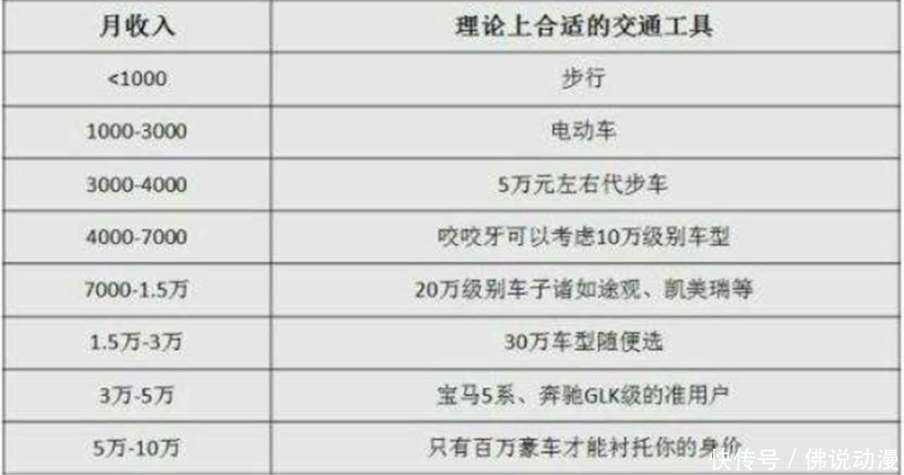 虽然说现在买车并不是什么很稀有的事,去年全国的汽车销量也超过了2800万辆,但这也并不是说明不管是什么人都可以买车。对于汽车来说它不仅是件大宗商品,也同时是长期的消费品,先不说保养和维修是需要定期和不定期出现的,就光是看看现在不断上涨的油价也看得出来,以往太低还是极有可能给自己带来很大压力的。那么我们就来看看究竟收入多少能大概对应买什么价位的车,给大家一个参考。月收入与汽车对照表,别打肿脸充胖子,看看你能开啥车?