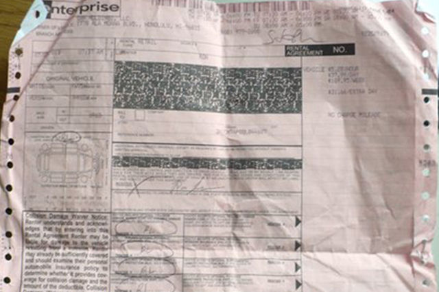 离开租赁公司前切记清点文件,租赁合同(一般是一张粉色纸也就是行驶证)、保险单、个人护照及驾照(我遇到过很多人拿到车后,一激动把自己的证件遗忘在租赁公司了)。