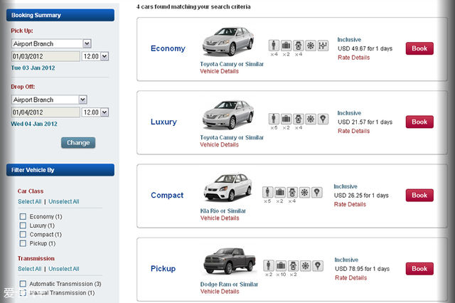 首先通过网站查询各大租赁公司的讯息,Rentalcars是一个类似于携程网的大型综合性租车网站。网站几乎涵盖了所有租车公司的产品讯息。