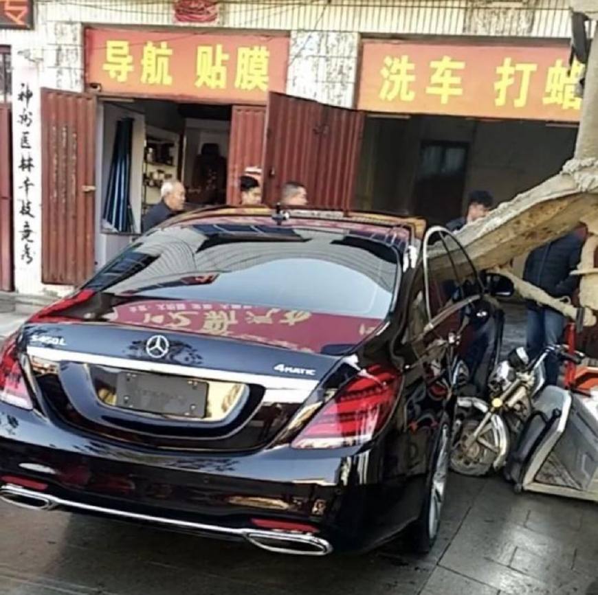 广州的这位老板现在的心里十分懊悔,因为他刚花了130多万买的奔驰S450L,在开去洗车店准备洗车而停在店门口的时候,被一辆三轮车给撞变形了。从上面这张图来看,奔驰车被一辆电动三轮车撞到凹进去了,奔驰车的右边两个车门已经完全被撞坏掉了,如果维修的话必须是全部换掉,而造成这次碰撞的原因是一辆水泥搅拌车,在倒车的过程中撞上了这辆电动三轮车,然后一直往后倒车,这就导致了这样这辆三轮车撞到奔驰车,硬生生的把奔驰车的右侧车门给撞的凹进去了。