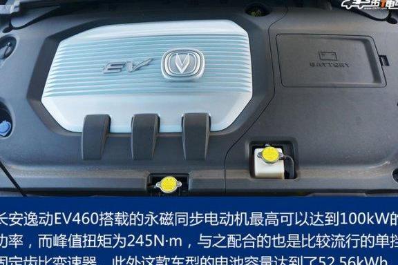 长安逸动 EV460 搭载的永磁同步电动机最高可以达到 100kW 的功率,而峰值扭矩为 245N · m,与之配合的也是比较流行的单挡固定齿比变速器。此外,这款车型的电池容量达到了 52.56kWh。