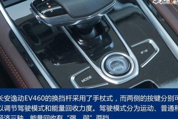 此外,该车拥有运动、普通和经济三种驾驶模式和 强、弱 两挡能量回收力度调节。在运动模式行驶时,逸动 EV460 的 油门 响应速度非常快,尤其在前段加速中,推背感非常强烈,如果没有做好心理准备,很有可能出现头晕的现象。而普通模式和经济模式则平缓了很多,如果不深踩 油 ,加速力度不会过大。两挡能量回收如果不是特殊情况建议使用低挡位,如果使用高挡位时会感受到很强的拖曳力,有种 不踩油门既刹车 的感觉。在加速能力的测试上,该车比同级别车型略有优势,10s 的 0~100km/h 加速时间对于一款纯电动车来说已经算相当不错了。