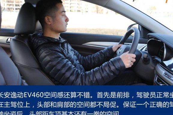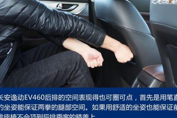 对于一款紧凑级家用轿车来说,长安逸动 EV460 空间感还算不错。首先是前排,驾驶员正常坐在主驾位上,头部和肩部的空间都不局促。至于后排的空间,该车表现得也可圈可点,首先是用笔直的坐姿能保证两拳的腿部空间。如果用舒适的坐姿也能保证前排座椅不会顶到后排乘客的膝盖上。然而,这款车的设计可能是四人座,因此只在后排配备了中央扶手,却没有中央头枕。虽然空间不小,但如果后排坐三个人,中间乘客的舒适度可能无法保证……