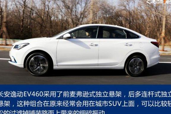 从舒适度的角度来谈,长安逸动 EV460 还是非常值得赞许的。它采用了前麦弗逊式独立悬架,后多连杆式独立悬架,这种组合在原来经常会用在城市 SUV 上面,可以比较轻松的过滤掉铺装路面上带来的细碎振动。但经过几番路面测试后,发现悬架的调校还是偏软,因此过大的坑洼或是减速带会让车内的振动幅度较大。