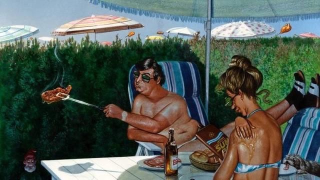 和图2一样,这幅插画也是讽刺了人类所带来的全球气候变暖的状况。假如有一天,气候真的如图中看到的那么可怕的话,或许人们会开始习惯灼热的热量,并在露天场所烤牛排。