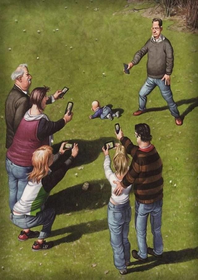 你有没有注意过,孩子们一生中似乎都离不开摄像头?相机已经存在了很长时间,但在过去十年中,随着智能手机功能的不断增强,相机的数量也呈指数增长。它们不仅掌握在我们手中,而且还在我们周围的监视物品中。对于许多人来说,相机不再是奢侈品。但是,这会影响孩子进入成年期。他们的一举一动都被世界各地的人们记录和评判。正如这个插画中展现的,虽然每个人都在拍摄这个孩子,但有人想过要抱它吗?孩子们需要的不是社交媒体账号,他们需要的是爱。