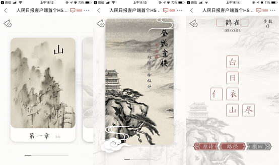 就目前为止,腾讯、网易等游戏厂商都曾表达过对“功能游戏”的兴趣与重视,甚至是布局。以腾讯为例,其最新研发的功能游戏《子曰诗云》便是一个典型案例,“子曰诗云”原泛指儒家学说中的言论,将这句成语用作游戏名也切合了产品诞生的本意——以中国传统文化最具代表性的唐诗宋词为蓝本,加入游戏的互动,配以泼墨山水的中国画风,让用户在游戏中学习和重温中华传统文化的味道与底蕴。