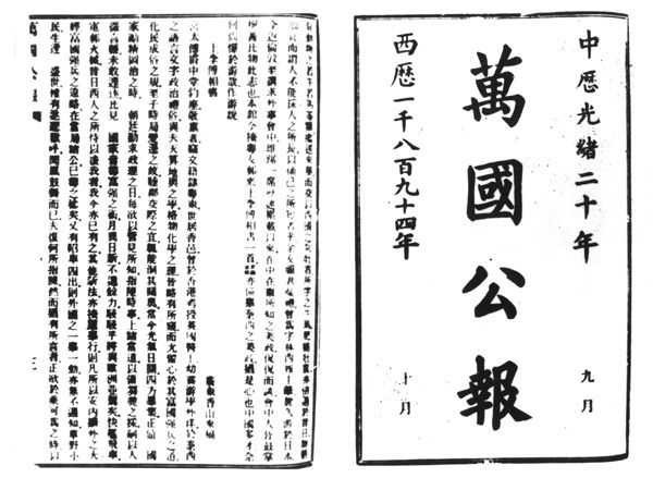 《万国公报》是晚清时期教会创办的报纸中最具有影响的,也是存在时间最长的。它由美国传教士林乐知创办,对于晚清知识分子的思想启蒙产生了重要作用。