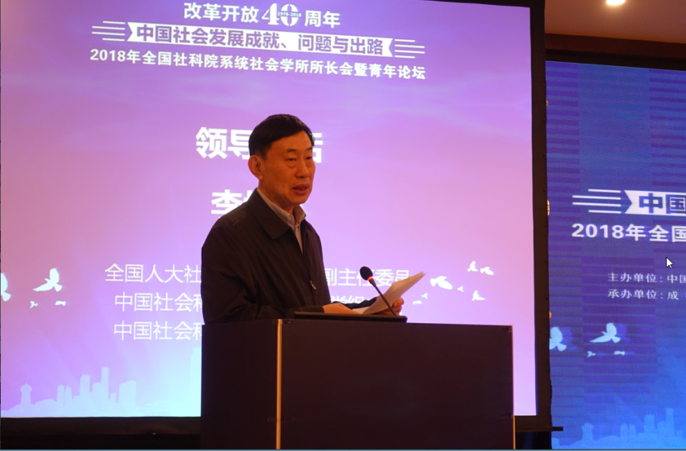 小编: 原题:回顾发展 总结经验 探讨问题 寻求出路 2018年全国社科院系统社会学所长会暨青年论坛在成都举行 全国人大社会建设委员会副主任委员、中国社会科学院副院长、党组成员李培林讲话