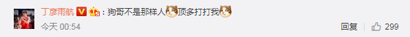 如今正在美国养伤,新赛季要为NBA发展联盟德克萨斯传奇队效力的丁彦雨航,也在易立微博下方留言道:“狗哥不是那样人,顶多打打我。”