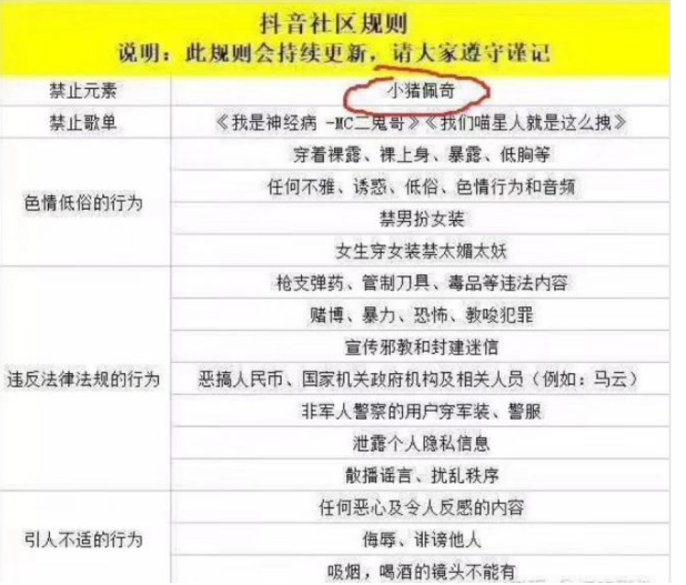 小猪佩奇惨遭抖音封杀,思索一下原因应该很简单,联想前段时间抖音被勒令整改,内涵段子被永久关停,或许很多网友应该能理解抖音的做法了。