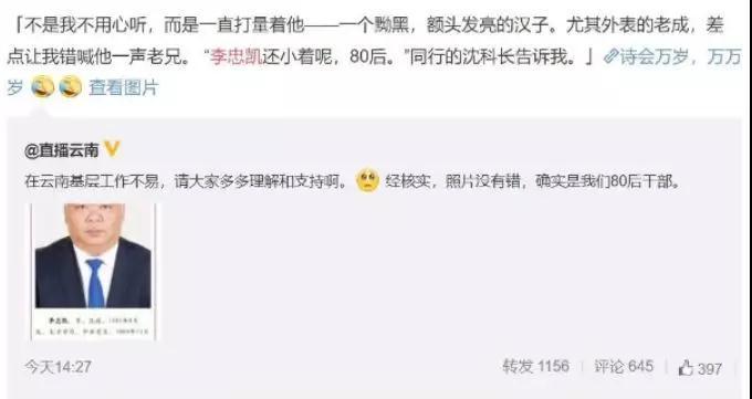 小编: 云南80后白发干部发声:深夜还在加班 照片是13号接通知去拍的 一张头发花白的人事任免照片,让云南楚雄这名新提拔的80后干部李忠凯成为了“网红”。11月16日晚间