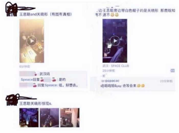 在前段时间王思聪与关晓彤夜店狂欢照片等等被曝光,据了解是一位夜店人员发的动态,他声称是王思聪与关晓彤,但是王思聪还是那个王思聪,那个“关晓彤”却一直带着白色帽子。也有一部分人表示看体型一些都很像关晓彤,而王思聪曾经手撕鹿晗等等。