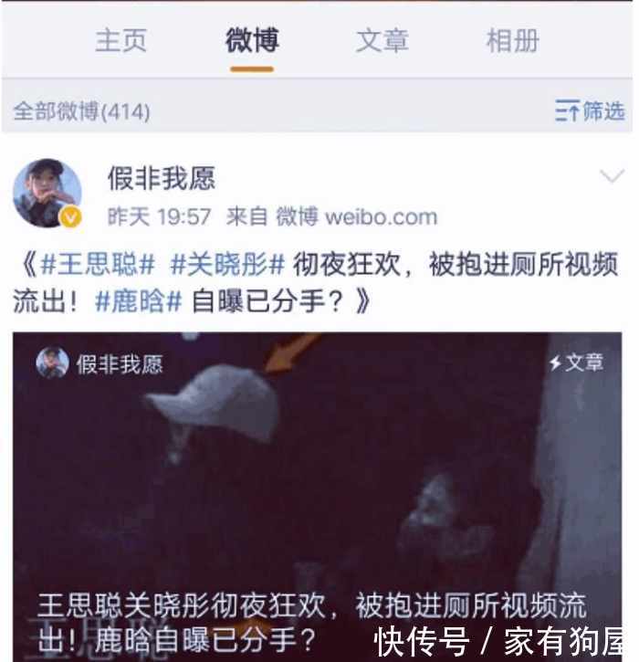 但就是没轰炮过关晓彤,甚至还关注了她的微博,有的猜测是不是因为王思聪立帖子不成效,打算亲自动手。自从两人的照片等等被曝光之后,两位当事人没有给出任何答案。在前段时间又有一位博主爆出在那天晚上,被抱进厕所视频流出,鹿晗自曝已分手等等。