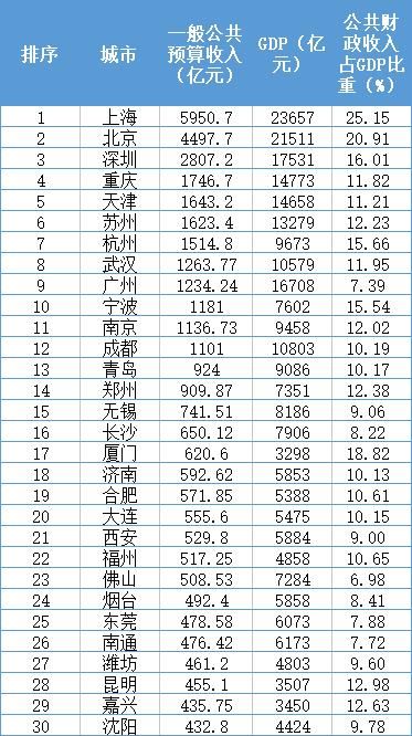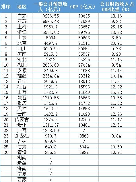 在公共财政收入占GDP比重方面,北京、上海占领先优势。31个省市区中,仅有这两地公共财政收入占GDP比重超过20%。