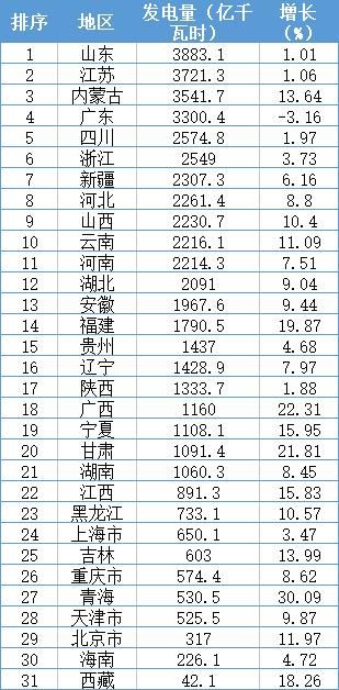 2018年1-9月全国发电量为50283.8亿千瓦时,同比增长7.4%。前九月全国发电量前十省市分别是山东省、江苏省、内蒙古、广东省、四川省、浙江省、新疆区、河北省、山西省、云南省。其中,2018年9月山东省发电量为409万千瓦时,同比增长7.32%。2018年1-9月山东省发电量为3883.1万千瓦时,同比增长1.01%。