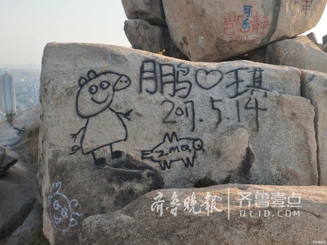 情报员“健康快乐壹点”6点47分发布消息:我估计好像是一对情侣相爱快到一年了,在邹城护驾山的山石上绘画出“爱的心声”字迹留个纪念!